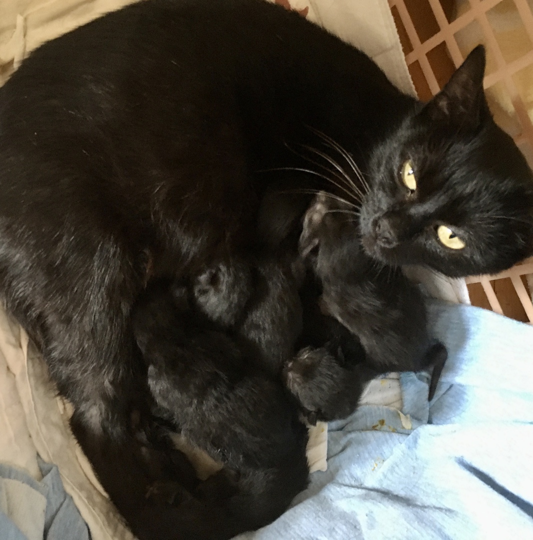 Kočička, která žila venku a každý ji vyháněl, byla umístěna do dočasné péče, kde po týdnu, když se dostatečně dojedla a zesílila, porodila 6 koťátek. Jedno bohužel nevydrželo. Koťátka nebudou celá černá po mamince, postupně se trochu vybarvují. Budeme přidávat fota.
