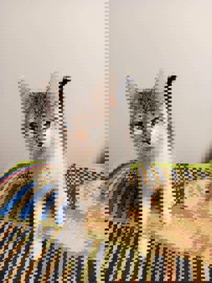 Bibi byla převzata do péče po zemřelé majitelce spolu se sourozenci, které dle informací paní stačila zachránit. Více o nich nevíme. Každopádně jsou vymazlené, zvyklé na člověka. Bibi je jediná kočička mezi kocourky. Teď jsou všichni v karanténě kde se vykrmují, zbavují parazitů a blech.