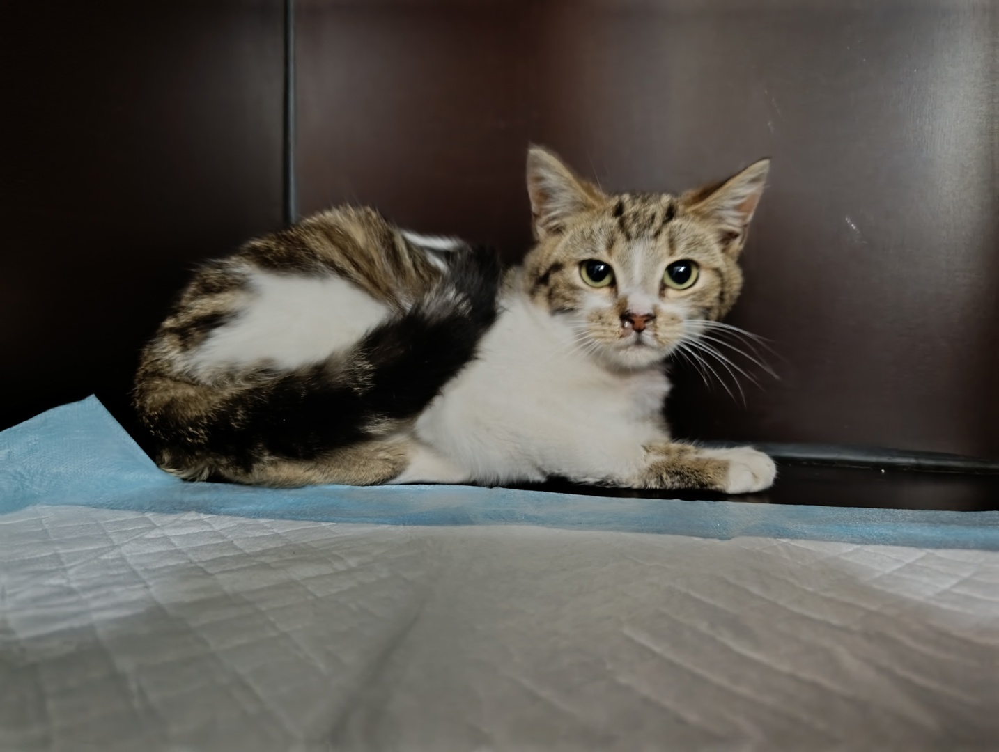 Chantal je asi půlroční kočička v rámci odchytu ve Chvalovicích. Jelikož je anemická, podvyživená a má rýmu, musela se kastrace odložit na později. I když se trošku bojí, je to mazel.