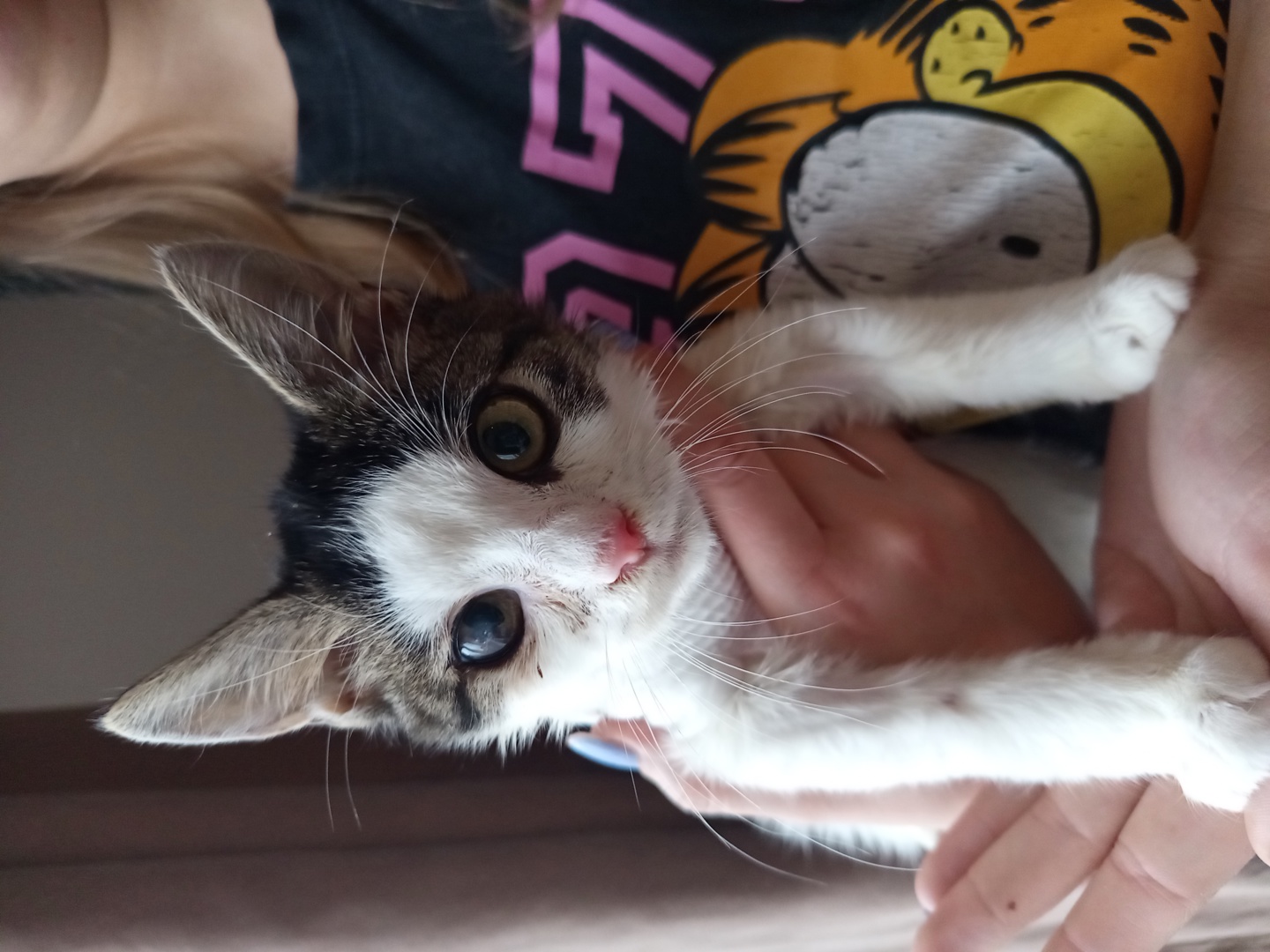 Koťátka ze SkramníkuNalezena byla ještě s jedním koťátkem v hrozném stavu. Calicivirus, herpesvirus, mykoplazma.Bohužel test na FeLV pozitivní. Stále se léčí s kožním problémem. Budeme hledat společný domov i se sestřičkou Sanny.